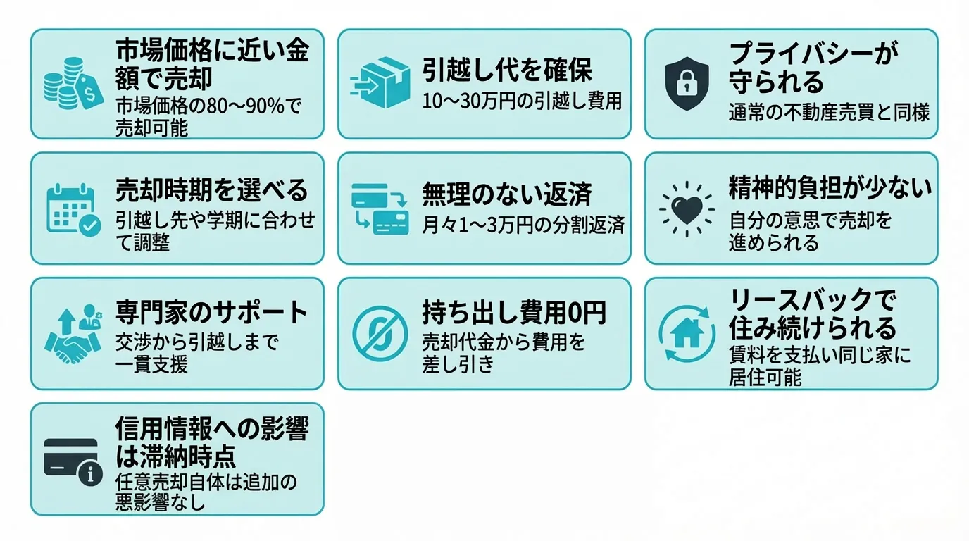 任意売却には、競売にはない多くのメリットがあります。一つずつ見ていきましょう。